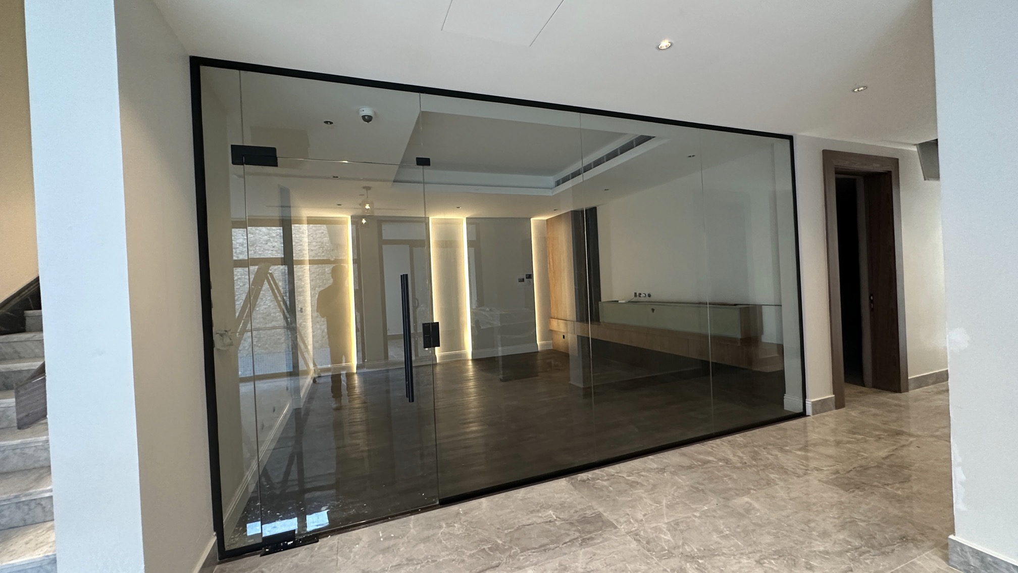 The modern design of this place reflects tranquility and comfort using serene colors and spacious areas, along with longitudinal lines that enhance openness and fluidity.